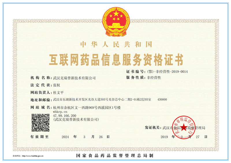 互聯(lián)網(wǎng)藥品信息服務(wù)資格證書 證書編號(hào):(鄂)-非經(jīng)營(yíng)性-2019-0014