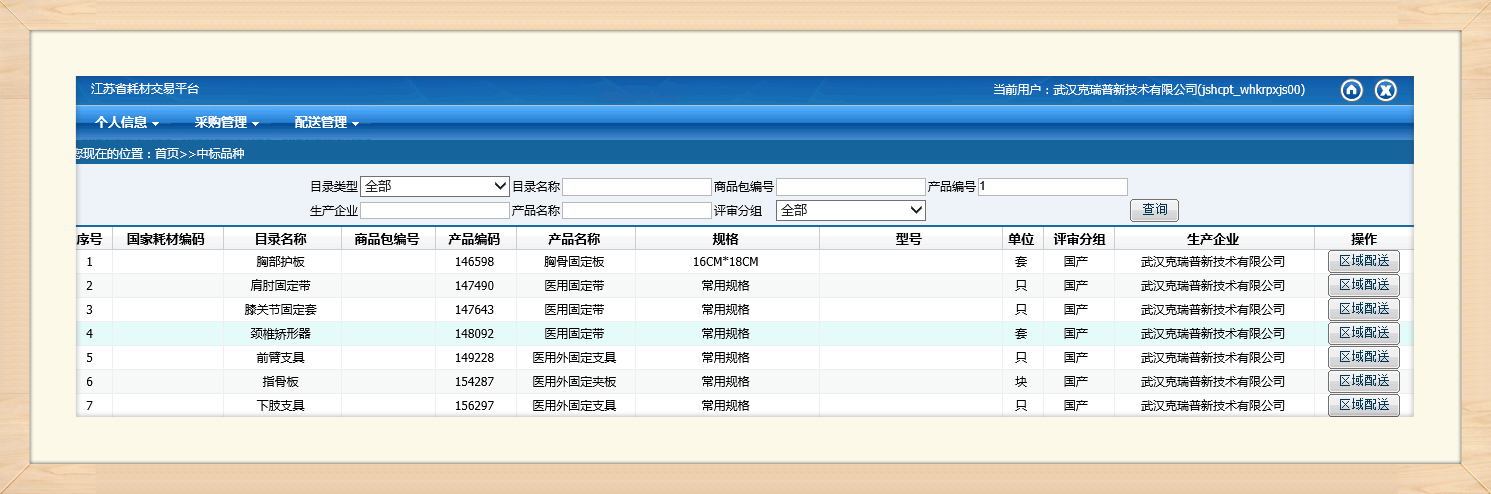 (江蘇省耗材交易平臺中標(biāo)產(chǎn)品部分截圖)