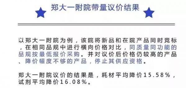 在此之后,河南省更是明確把這兩家醫(yī)院的談判價格***值作為限價,全省所有公立醫(yī)院在采購議價談判產(chǎn)品時,不得高于這兩家醫(yī)院的談判價。