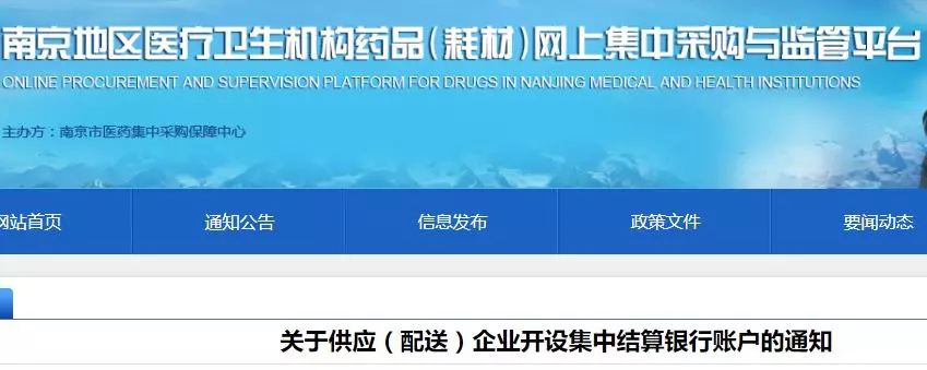 今天,南京市藥品耗材集中采購(gòu)平臺(tái)發(fā)布《關(guān)于供應(yīng)(配送)企業(yè)開(kāi)設(shè)集中結(jié)算銀行賬戶的通知》、《關(guān)于供應(yīng)(配送)企業(yè)開(kāi)設(shè)集中結(jié)算系統(tǒng)賬號(hào)、CA的通知》。