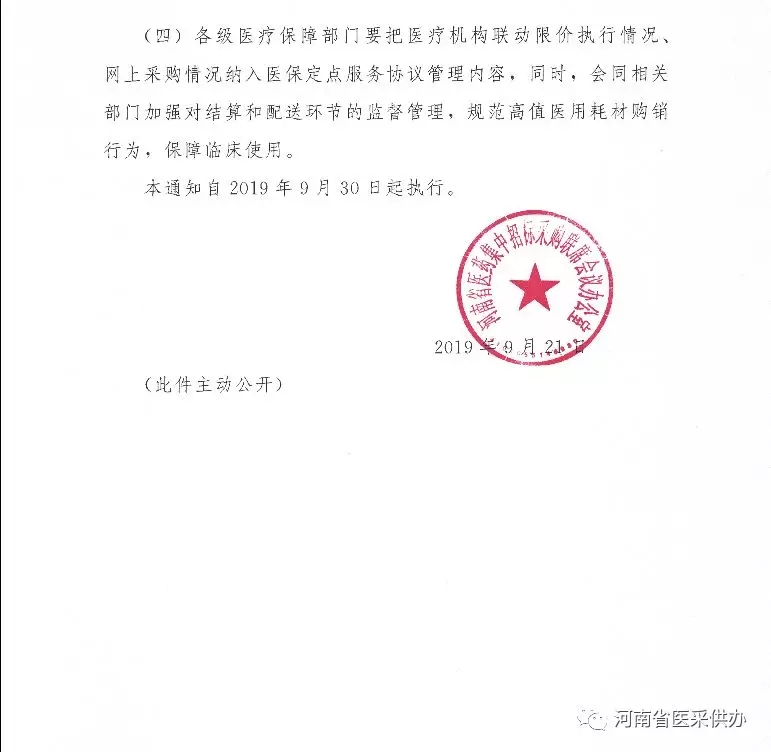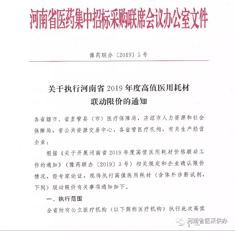 河南省公共資源交易中心2019年9月24日于網(wǎng)站發(fā)布《河南省公共資源交易中心》豫藥聯(lián)辦〔2019〕5號文件,***采購限價即將執(zhí)行。